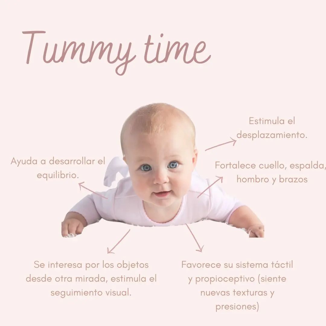 ¡Hablemos de estimulación para recién nacidos! Tiempo boca abajo, de guatita o tummy time. 🌟Esta posición nos invita a potenciar habilidades sensoriomotrices en el bebé: 👉Se interesa por los objetos desde otra mirada, estimula el seguimiento visual. 👉Fortalece músculos del cuello, espalda, hombros y brazos. 👉Favorece su sistema táctil y propioceptivo (siente nuevas texturas y... continuar leyendo