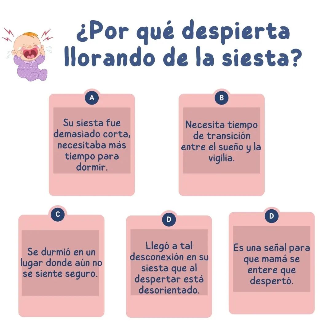 👶¿Por qué despierta llorando de la siesta? 👉Generalmente se piensa que el llanto es un indicador de que al bebé le faltó dormir y efectivamente podría ser esta la razón. 👌Pero si después de unos minutos despierto está feliz, con buena disposición y energía, entonces no necesariamente quedó con sueño. ✴️Existen otros motivos por los... continuar leyendo